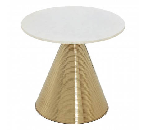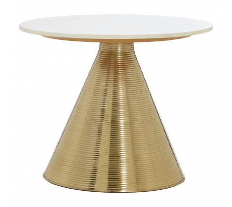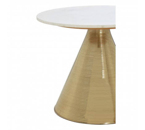 Acklam table, white marble top, gold finish base Materials: Marble Features: White marble top, Rich gold finish, Textured base, Contemporary