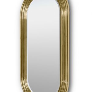 Aileen Eagleton is a rounded oblong mirror inspired in the most iconic buildings from Ancient Rome, because of its massive size and concentric shape. It features a frame produced in polished brass accented by an LED strip around the whole body.