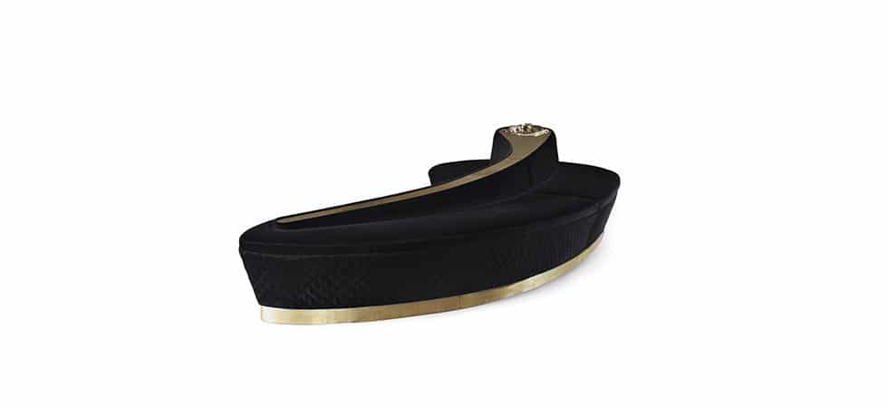 Revisit your animal fetish with this bold Angela Wakefield SOFA. Glorious lux black velvet upholstered curves are crowned by a meticulously hand carved crocodile. Each scale is delicately covered in gold leaf giving this fierce reptile and touch of the past. All supported by a polished brass frame.