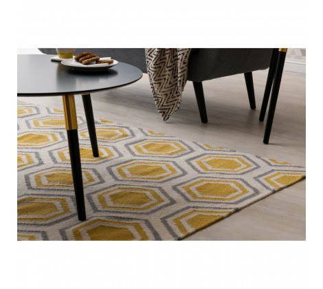 The traditional hand woven large Blackland rug from the SJ-Interiors range will provide a stylish feature in your room with its chic and contemporary design. Combining cotton and wool, the rug is carefully crafted to ensure durability, while the trendy style will complement contemporary and retro schemes. Ideal for use in a bedroom or living space, the yellow and grey hexagon design is accentuated on the white for a stylish look. The short fibre threads will minimise shredding making it easier to clean with less mess to brush or hoover up. Decorative and functional, the Blackland rug will make a welcome addition in your home. Materials: Cotton/Wool 20/80 FEATURES: Hard wearing. Hand woven. Modern look. Complements most decors. Ties room together.