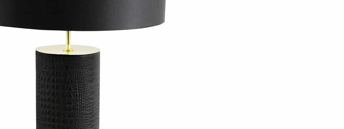 Take a walk on the wild side with the exotic design of the Celia Frances Bedford Lamp. Lavish and wild, the lamp’s cylindrical body is opulently wrapped in sumptuous black crocodile print leather while two seductively silent, hand-carved crocodiles curve around the base. Topped with a delicious black satin shade, the soft sultry glow that pours from underneath will unleash your primal desire.
