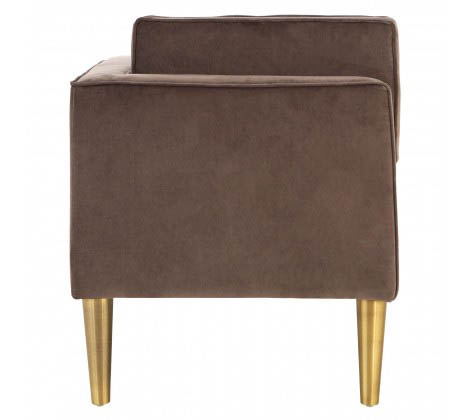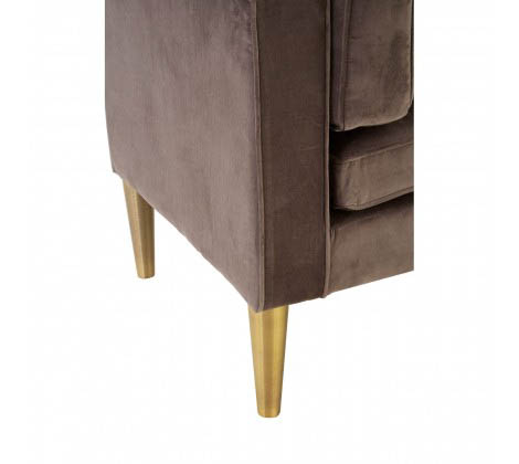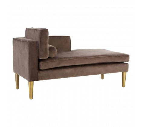 The Elystan chaise is covered with tactile velvet and boasts a lean, slim design. Its arms and cushions are trimmed with piping, providing a further touch of texture to this sophisticated accent piece. It is supported by tapering legs made from smooth metal, each one given a rich gold finish to complement the grey. Materials: Cotton Velvet, Foam, Metal, Pine Wood, Plywood Features: Luxe design, Tactile velvet upholstery, Muted grey colour, Gold finish metal legs