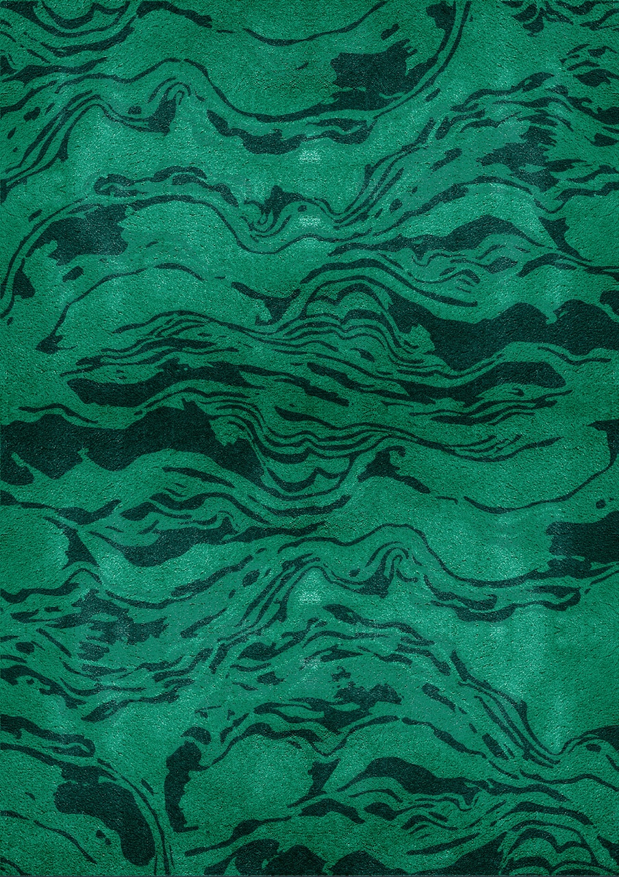 Materials/techniques: Hant-tufted, loop / natural wool, botanic silk