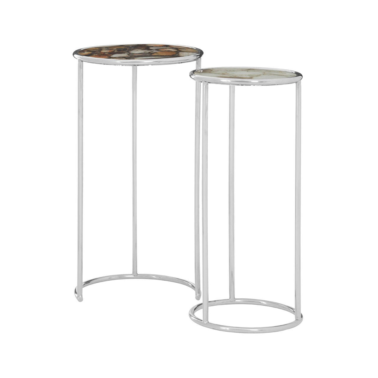 Frankland Nesting Tables Agate / Silver Frame Set of 2 Materials: Steel FEATURES: Sleek polished steel, Semi-precious agate stone, Set of 2, Sophisticated accent pieces