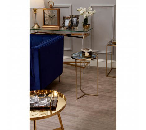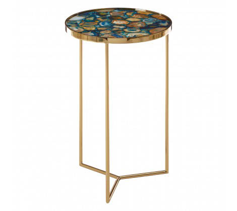 Frankland Blue Agate Table Gold Frame Materials: Steel FEATURES: Gold coloured steel, Semi-precious agate stone, Minimal legs, Contemporary