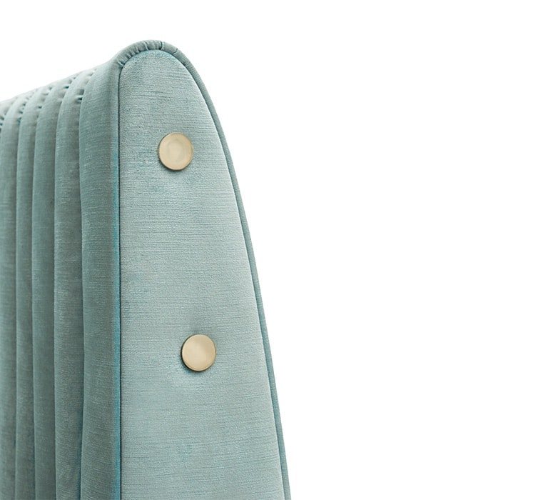 The Melinda Camber Porter bed is a mid-century styled panel bed, with bonded velvet on the headboard and footboard, perfect for any bedroom. Expertly stitched and accented with tufted brass buttons on both sides, proving the high-quality of this stunning piece.