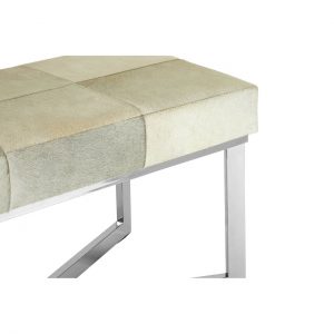 The thick seat of the Oakfield bench is upholstered with genuine leather for a textured finish. Its white stitched surface produces a subtle grid pattern. The stainless steel frame has a polished look and legs that intersect at the base. Coordinate it with the Oakfield white leather chair. Materials: Foam, Genuine Leather, Stainless Steel Features: Genuine leather upholstery, Textured finish, Stitched surface, Polished stainless steel frame
