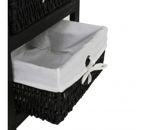 Storage is an important part of any home and the three tier black storage unit is an ideal solution. The three maize woven baskets have a white cotton liners, and the frame is made from paulownia wood, making it ideal for your living area. Each basket can be removed from the unit with ease, and you can separate the liners and wash them; keeping the unit looking fresh all the time. The black colour complements any decor. A great space saver and attractive to look at, the storage unit is perfect for keeping your home clutter free. Materials: Paulownia Wood, Maize Features: Practical storage solution., 3 Maize woven Baskets with Cotton Liners, Each basket can be removed easily. Durable paulownia wood frame. Space saver.