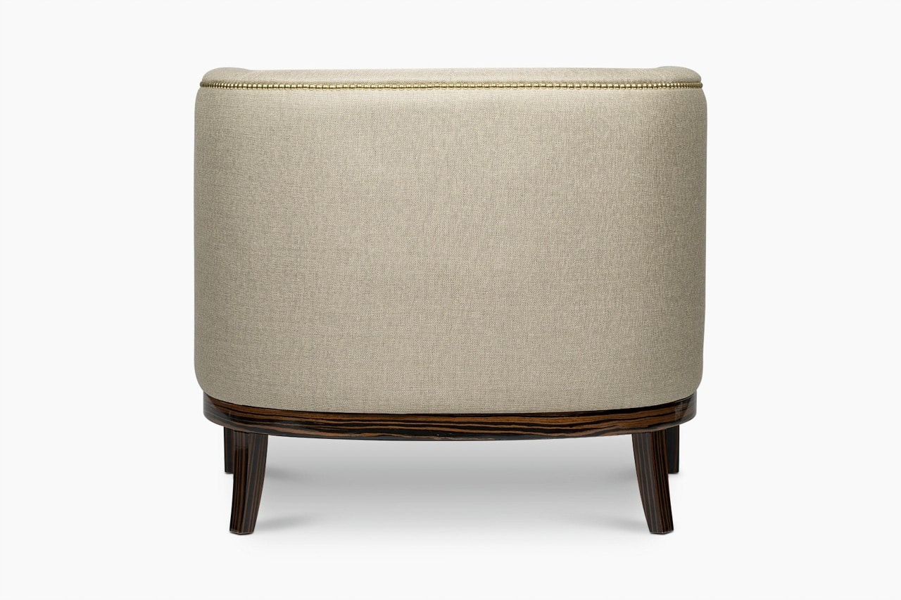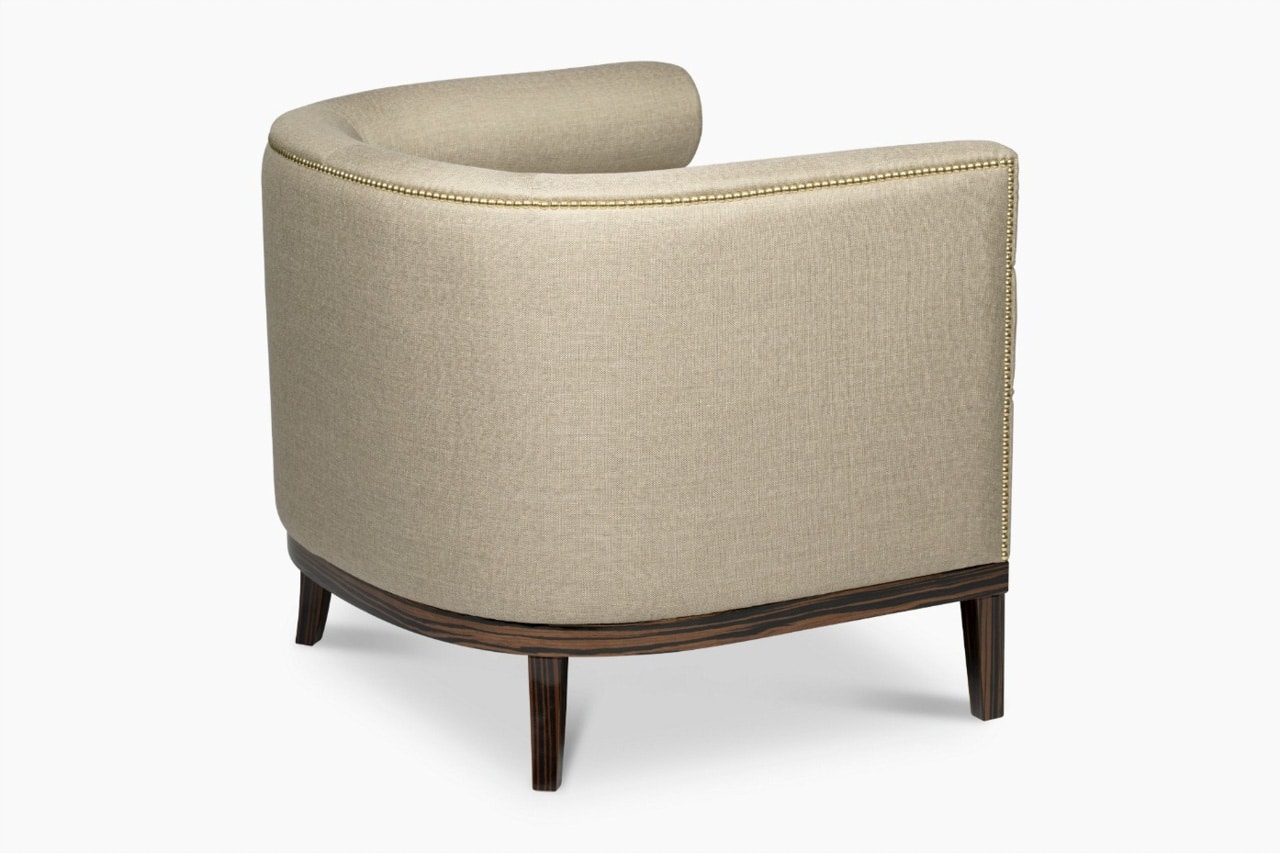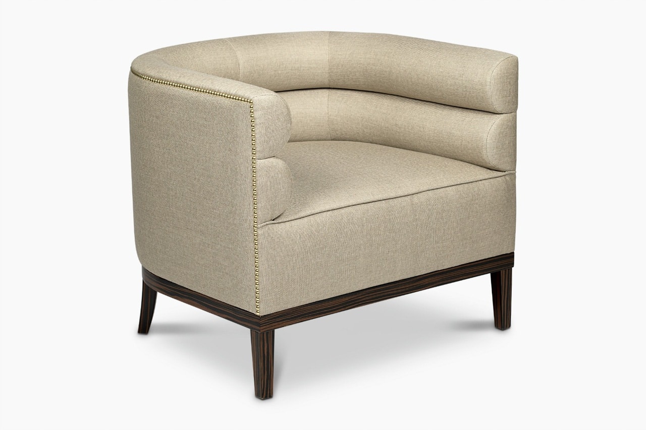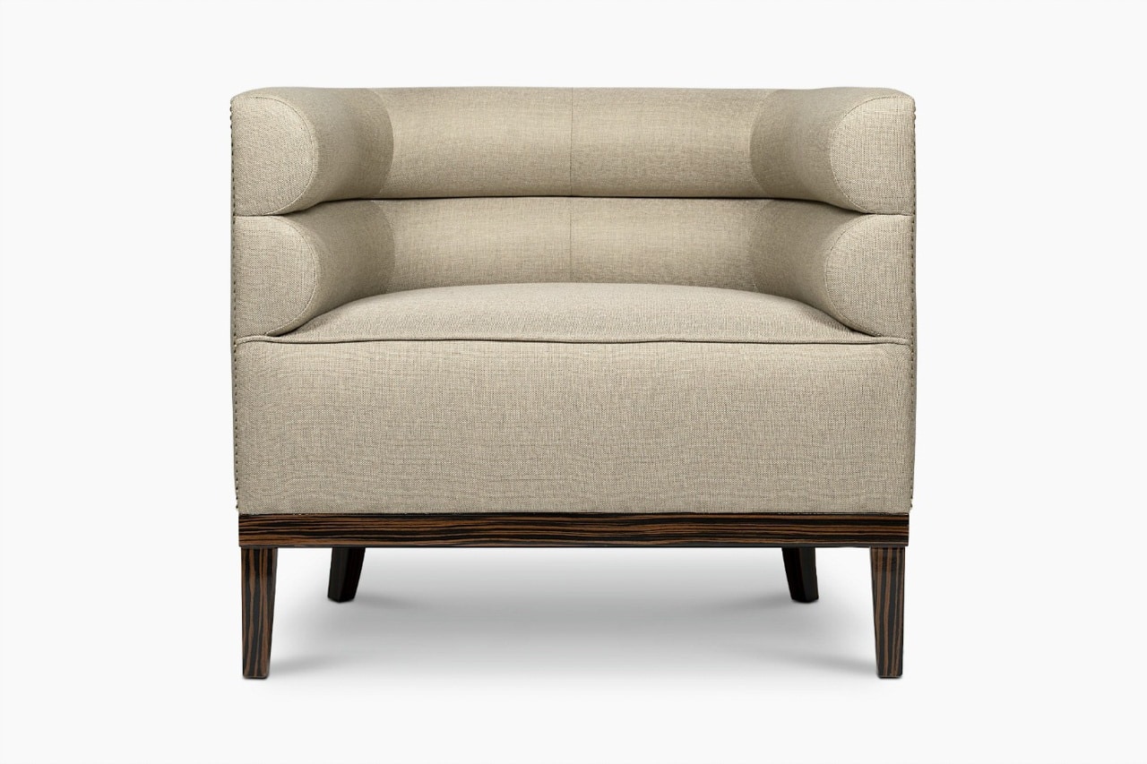 Oxford Armchair channel-tufted chair features a nailhead trim that wraps around the piece and legs in ebony wood veneer. It will add a tailored touch to any modern interior design. Oxford Armchair features a nailhead trim that wraps around the piece and legs in ebony wood veneer. It will add a tailored touch to any modern interior design.