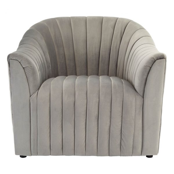 Pater Armchair, Grey Velvet Materials: Foam, Polyester Velvet, Wood Features: Art deco influence, Soft velvet upholstery, Channel tufted detail, Natural wood feet