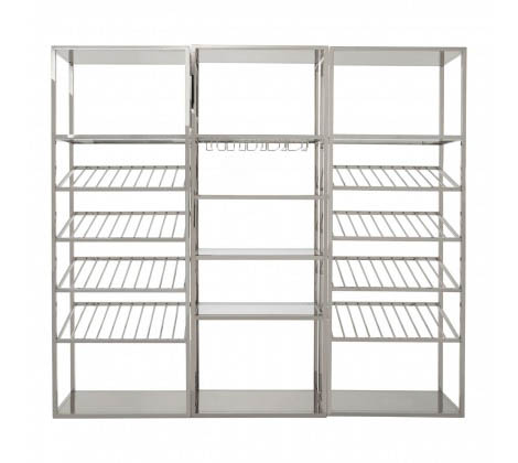 Pembridge Bar Shelf Unit With Glass Rack Materials:Glass, Stainless Steel FEATURES: Silver finish, Three shelves, Glass rack, Luxe style