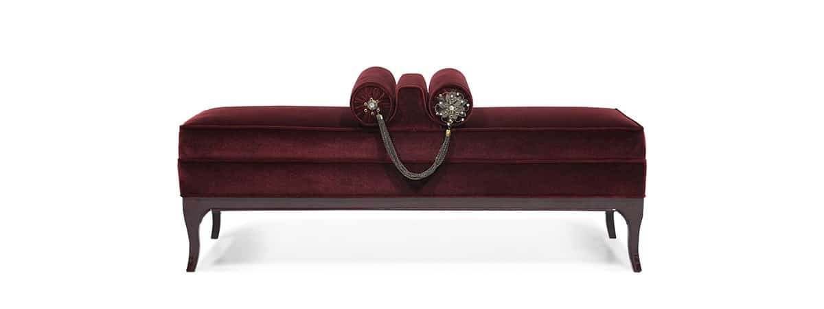 Phelan Gibb an affair with luxury. Shown upholstered in a sensuous cream velvet, with a solid wood high-gloss lacquer base to match and 2 crystal jeweled bolsters.