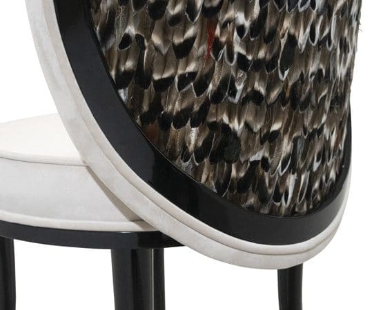 Entertain in haute style with the Phene Dining Chairs. Stunning feathers turn the outside back of this graceful chair into a wondrous work of art!