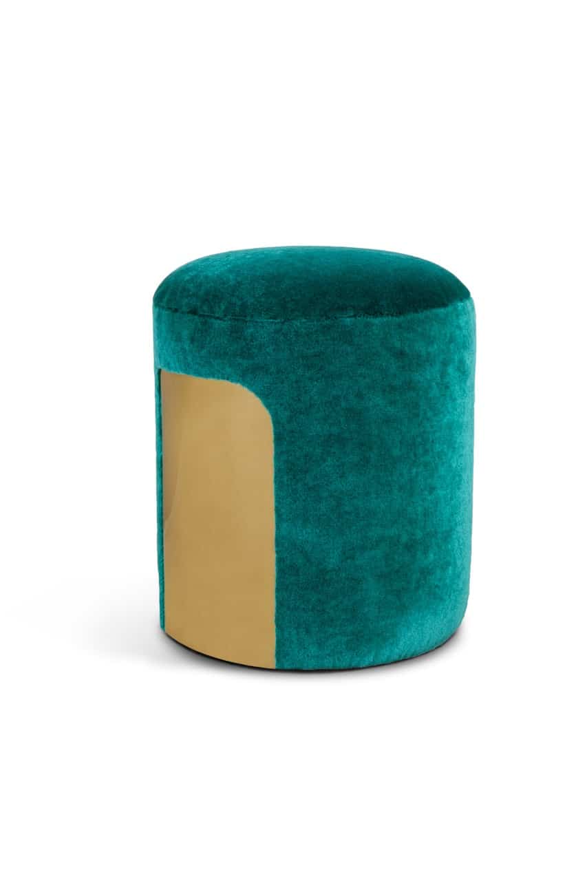 Following the same lines as the magnificent modular sofa, the Rawlings stool is the perfect decorative accessory to complete the look of your living room design. The padded stool features a brass shell that is embracing its soft rounded body, a unique detail that combines with the polished brass details on the rounded and oversized sofa design.