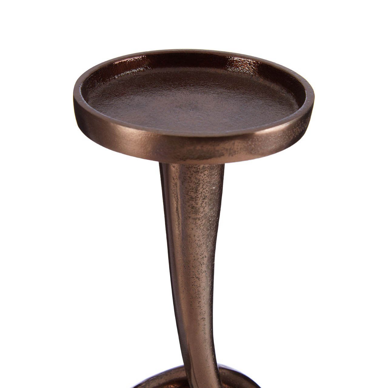 Formed into a semi-abstract shape from aluminium, this candle holder has a rough bronze finish that lends it texture as well as a rich metallic look. Materials: Aluminium FEATURES: Bold, unconventional design, Rough bronze finish, Aluminium material, Ambient accent piece