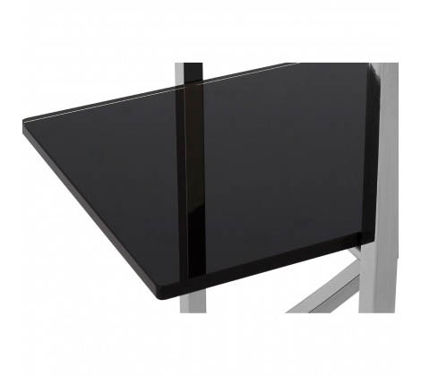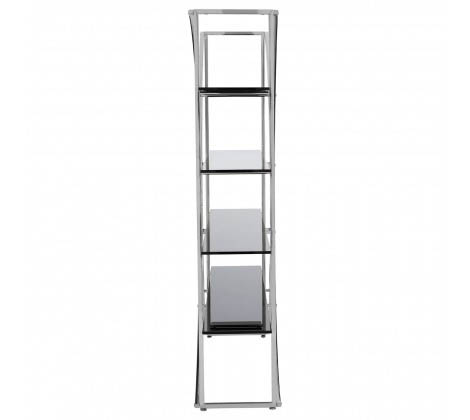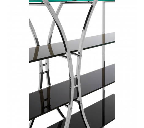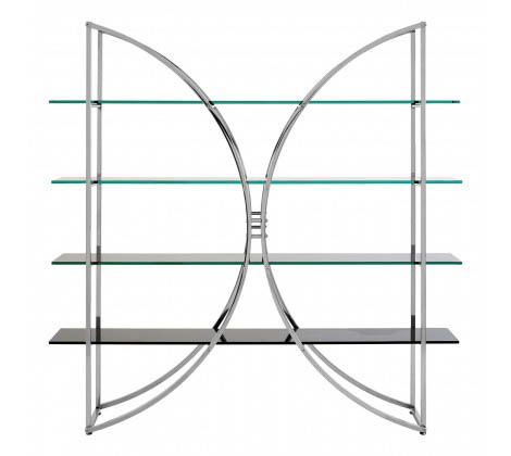 Silchester Curved Design Shelf Unit Materials: Stainless Steel, Tempered Glass Features: Stainless steel frame, Tempered glass shelves, Art deco influence, Statement piece