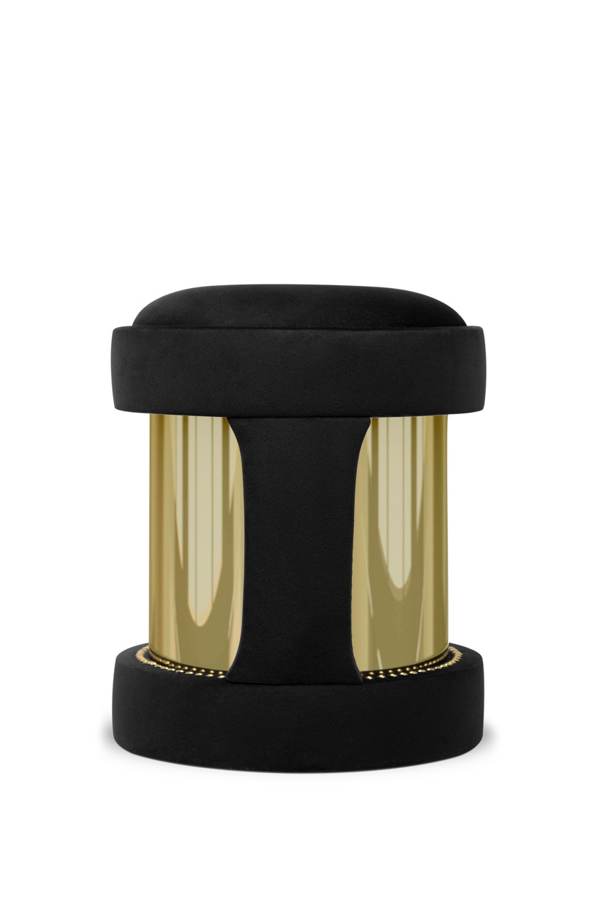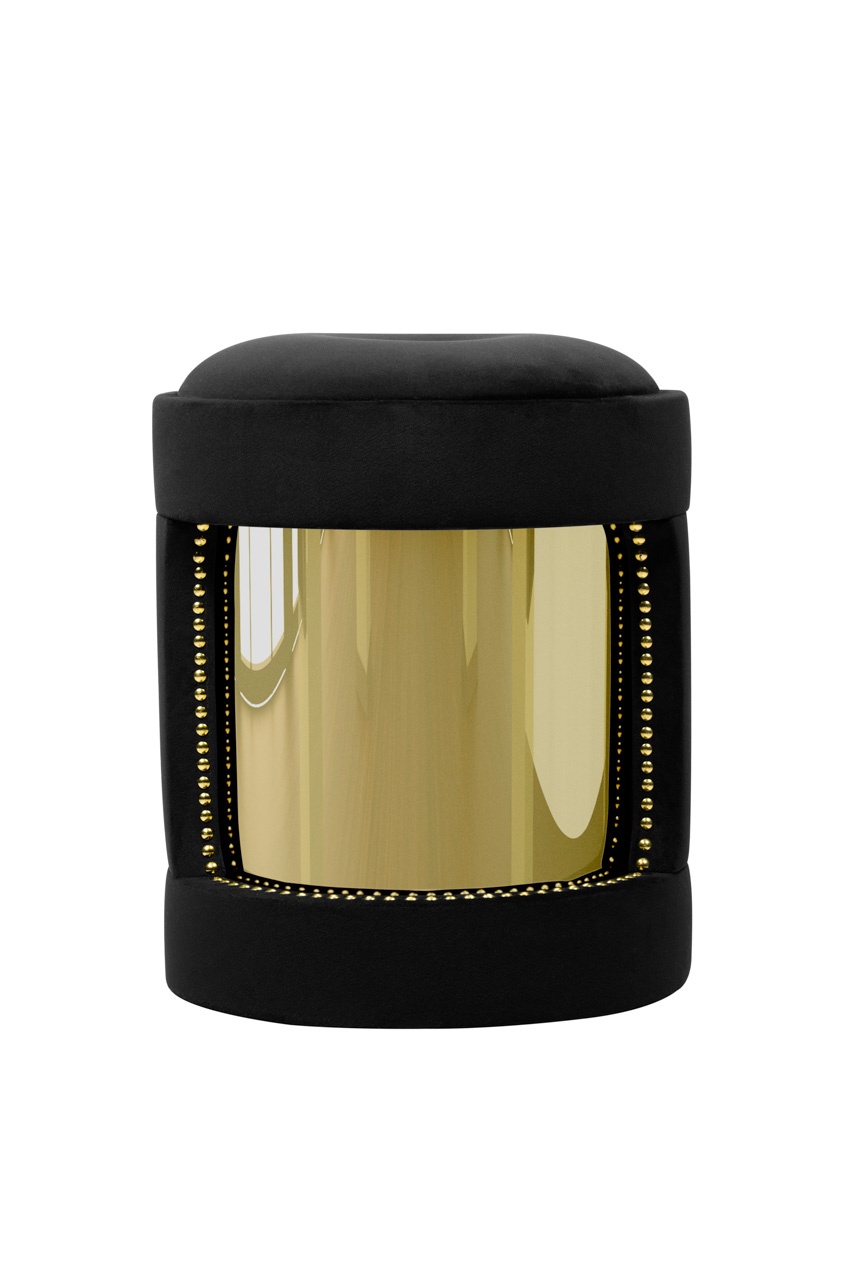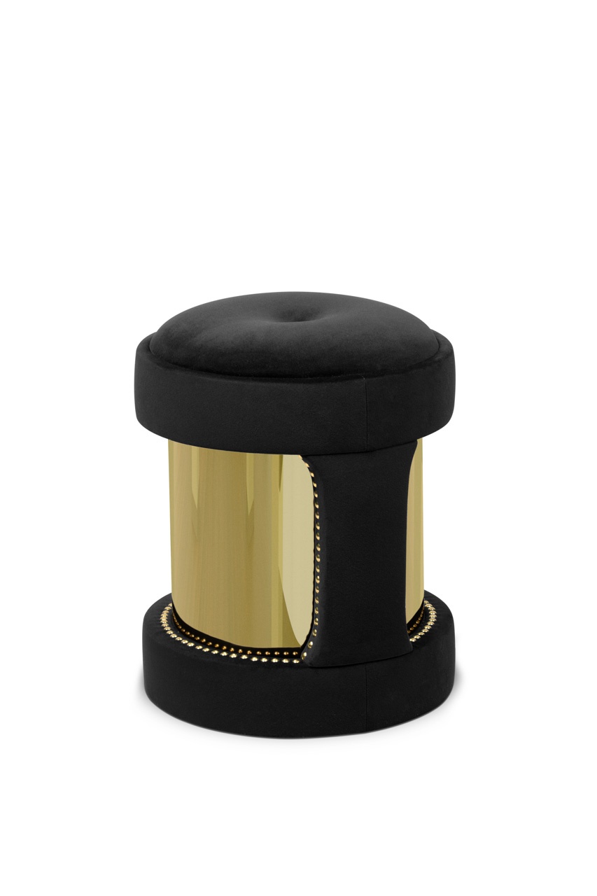 An upholstered delicacy emerging from the careful application of luscious black velvet touches and passionate design. Extra Luxury feel is given by the gold plated brass finish to this marvelous stool, which will embellish the most sumptuous contemporary and classic setting.