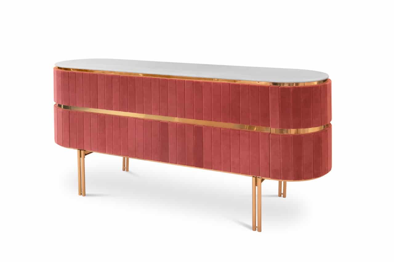 A distinctive piece to furnish your living room and add the perfect twist to your interior! It is upholstered with a soft velvet, andnstands out for its high-end look at the top. Features a curvilinear body with sleek and simple legs made of brass, that contrasts with strong accents of gold.