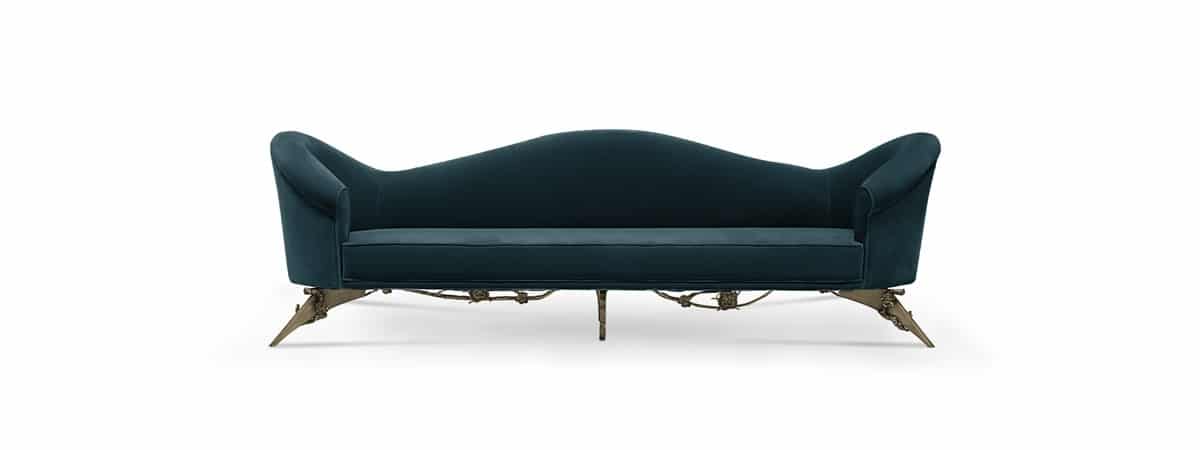 The vibe is flirty, a little delicate, ever so slightly vintage. Fully upholstered tight back sofa with an elegant lacquered band leading to a sleek and elegant feet.