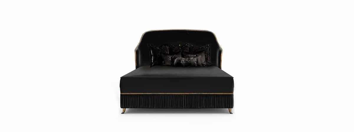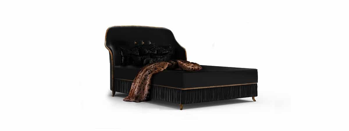 The Vivien Blackett III symbolizes the enticement and temptation of a great love affair. Just like the stolen moments of any forbidden desire, this bed makes your heart race about your next anticipated encounter. The fully upholstered headboard and base is delicately accented with antique gold leaf for a delicious black and gold piece.