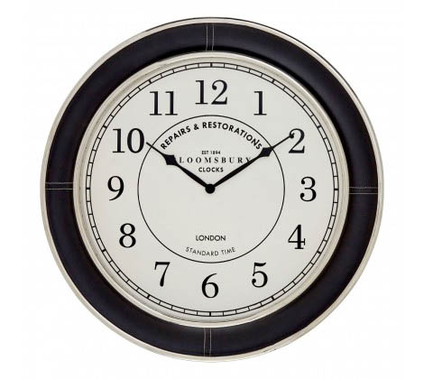 Giving any decor a regal touch, the Chesterton wall clock from our Sasha Jameson collection, features a genuine black leather finish, exuding class and practicality into your room. The steel frame ensures long lasting use, while the nickel finish rims complement the leather, accentuating a rich look. The off-white face features black numbers and hands ensuring easy reading, even at a glance. Black text on the face provides the clock with a worldly look, which will complement most decors. 1 x AA battery is all that is required to keep time ticking over. A fantastic timepiece for your home, the Chesterton wall clock will stand the test of time. Materials: Genuine Leather, MDF, Steel FEATURES: Beautiful timepiece. Regal style. Easy to read. Durable. Complements most settings